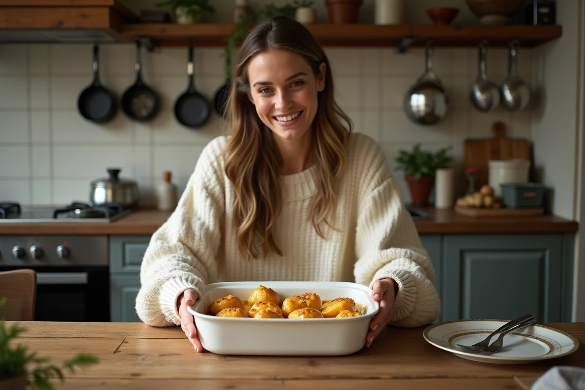 À la sortie du four, récupérez le jus de cuisson. Incorporez une bonne cuillère de moutarde à l’ancienne, un peu de crème épaisse, une touche de piment d’Espelette. Fouettez le tout hors du feu : la sauce prend, crémeuse, relevée, prête à napper généreusement votre plat. Ajustez l’assaisonnement, parsemez de romarin frais, et servez sans attendre.